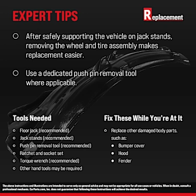 • Every Replacement fender liner comes with a one-year unlimited mileage warranty for peace of mind.