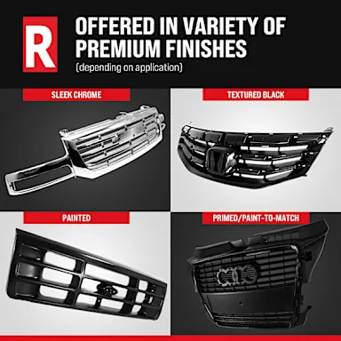• Each Replacement brand grille assembly is manufactured using the same processes as the original, ensuring excellent fitment and a quality finish.
