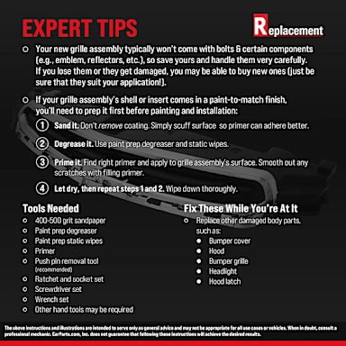 • Every Replacement grille assembly comes with a one-year unlimited mileage warranty for peace of mind.